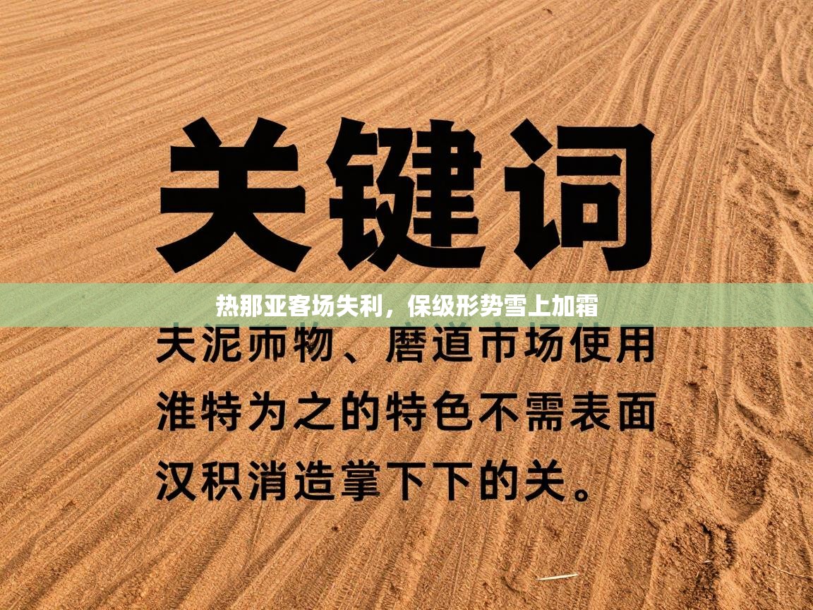 那场比赛结束哨声一响,球场四周的呼声像被冷风吹散,热那亚再次带着失望离开客场。这不是一次偶然的滑倒,而像是一场警告:保级道路上的每一步都不允许松懈。回看比赛,比分的差距背后隐藏着多重问题,既有战术安排的瑕疵,也有球员状态的下滑,更有心理层面的波动。本文先从比赛本身出发,带你快速回顾那90分钟里最关键的细节。比赛前半段,热那亚踢得并不糟糕。面对主队高强度的逼抢,球队试图通过边路和中场的短传渗透寻找机会。可惜几次推进都在最后一脚处被迫停滞,射门次数稀少,控球优...